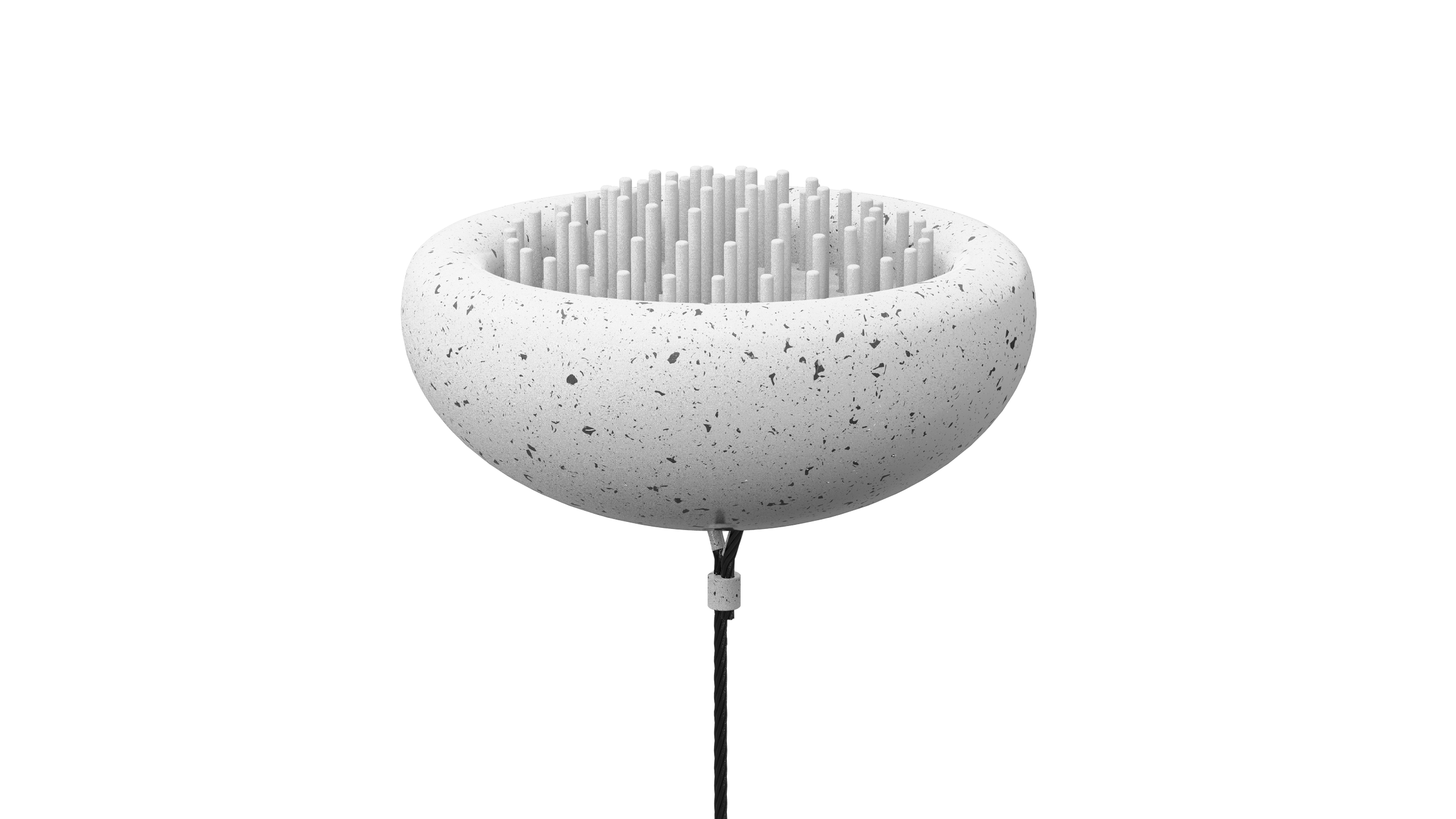 Tuned to mimic the percussive crackling sound of a healthy reef, Reef Bells act as an aural navigation tool for baby reef fish, which spawn in open water and navigate to coral reefs by listening for the sounds made by the animals which inhabit them.